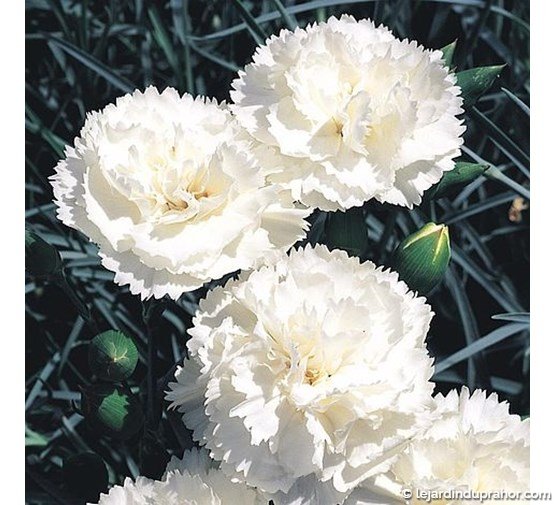 Magnifique petit oeillet vivace. Sa floraison est abondante, blanche et très parfumée de mai à octobre. Son joli petit feuillage, gazonnant, vert bleuté semi persistant forme un coussin épais. Il est à placer en bordure, rocaille, muret mais tient très bien en jardinière ou en pot.